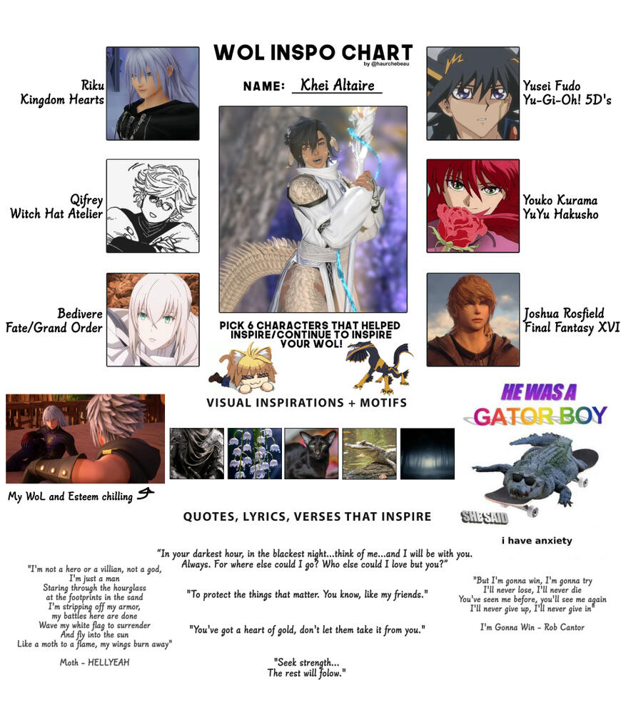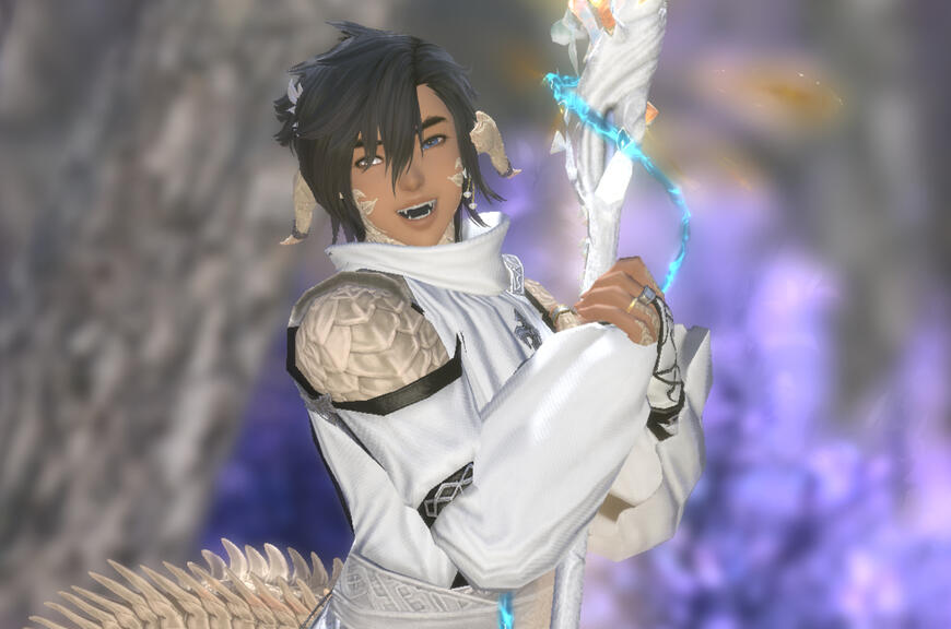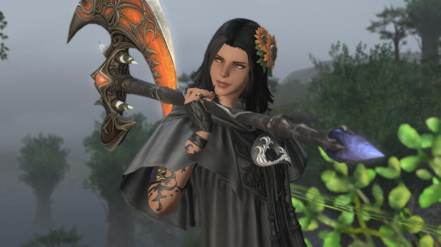 Khei is versed in a few different weapons but only wields two with high proficiency. Growing up, she learned how to wield a katana like his mother, as was mentioned previously. But after leaving Kugane, she did not have the heart to wield such a blade anymore. Instead, they chose to wield the same weapon her mom wielded on her many adventures across Eorzea: a bow. They were no master of it by any means, but he wielded it enough to defeat Gaius and his Ultimate Weapon.She did not really think much on what he wielded until they heard a voice in a particular alleyway in the streets of Ishgard. This voice leading her to a certain man slumped against a wall, greatsword laying next to him. This was where their journey to becoming a Dark Knight began. If you know the Dark Knight questline then I won't get too into it, but I will comment on how it personally ties with Khei's story. Khei is a very insecure and independent person, given how controlled she was by their mother and how people treated him growing up.Fray, subsequently Esteem, knew this too well and drew this out of her while testing him before revealing their true form. Fray and subsequently Myste continued to test Khei even after taking the mantle of the Dark Knight. Khei struggled, especially after the death of