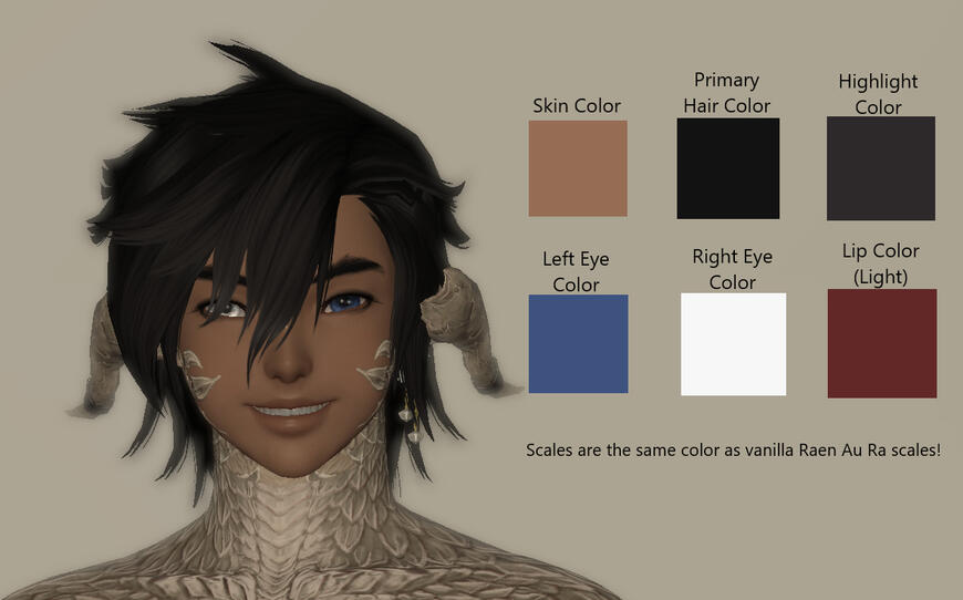 Scales: Same color as vanilla Raen Au Ra, with more scales covering their body